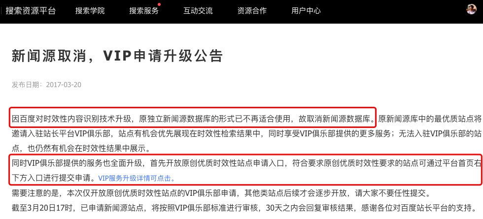新闻源是啥?简单理解就是百度官方认可的一批网站。后面百度取消所谓新闻源,其实只是换了个说法,一是用了VIP模式,二是大的网站如公信度高的官媒依然是百度新闻源网站。