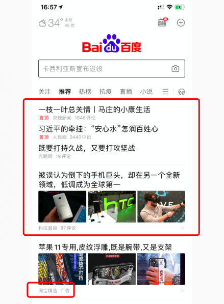 当然,你可以说,我直接投放百度信息流广告,那不就搞定了。嗯,也是这个道理,有钱就投广告也行。比如上面03图中那个苹果11专用就是信息流广告。