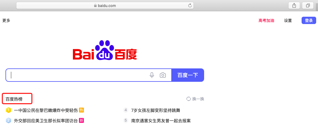 01图:百度未登录如图,仅显示百度热榜: