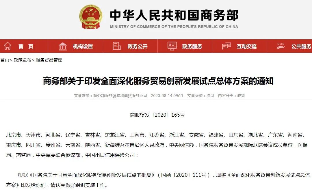 《全面深化服务贸易创新发展试点总体方案》