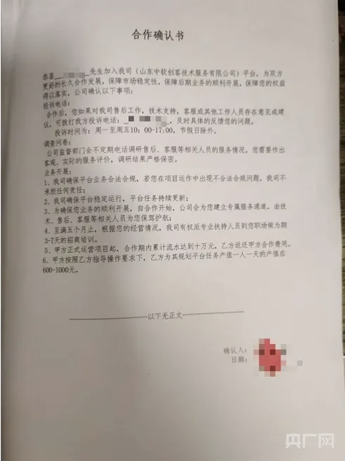 合作确认书(央广网发 受访者 供图)