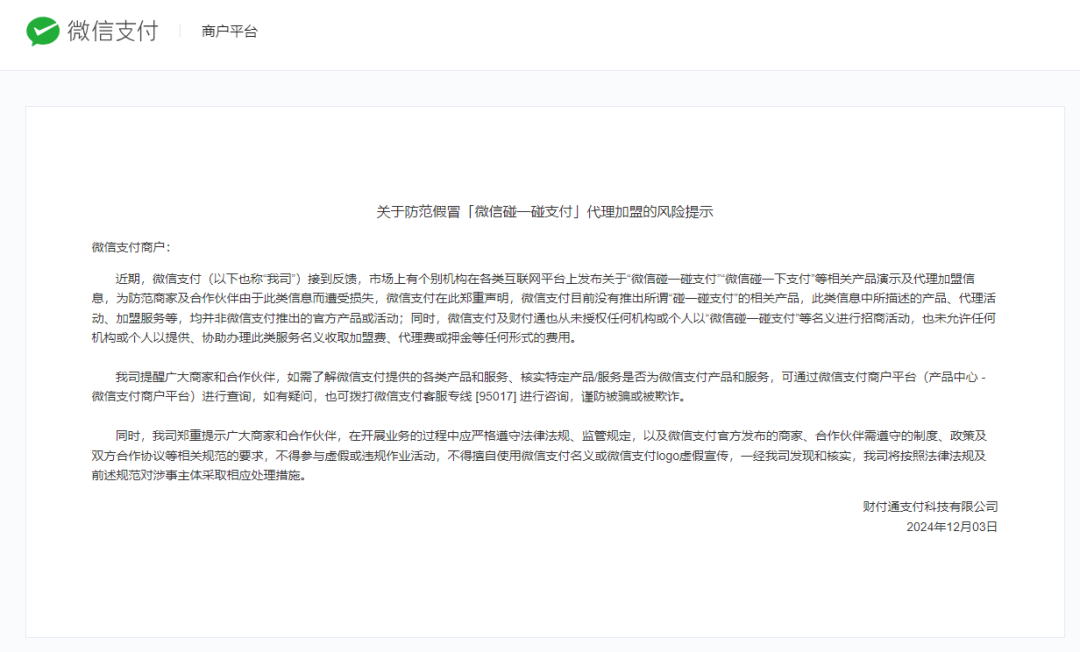 微信支付也推出了“碰一碰”支付方式