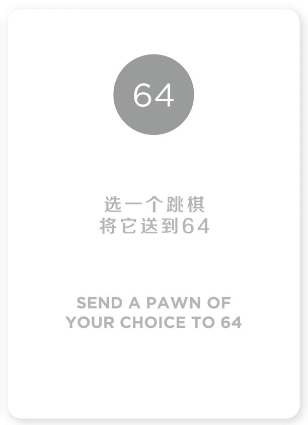 d. 而且,此时你落在了全红色的23,是个质数,还可以抽取一张技能卡牌。比如这时抽到一张即时牌,可以“选一个跳棋,将它送到64”,那么,就可以把位于23的跳棋跳到64啦!