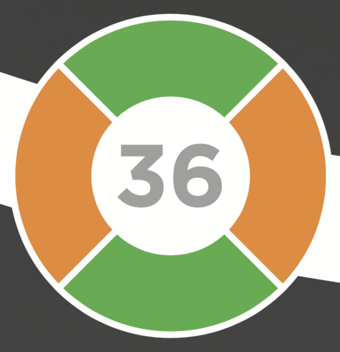 36 = 2*2*3*3,所以它由两块橙色和两块绿色组成。
