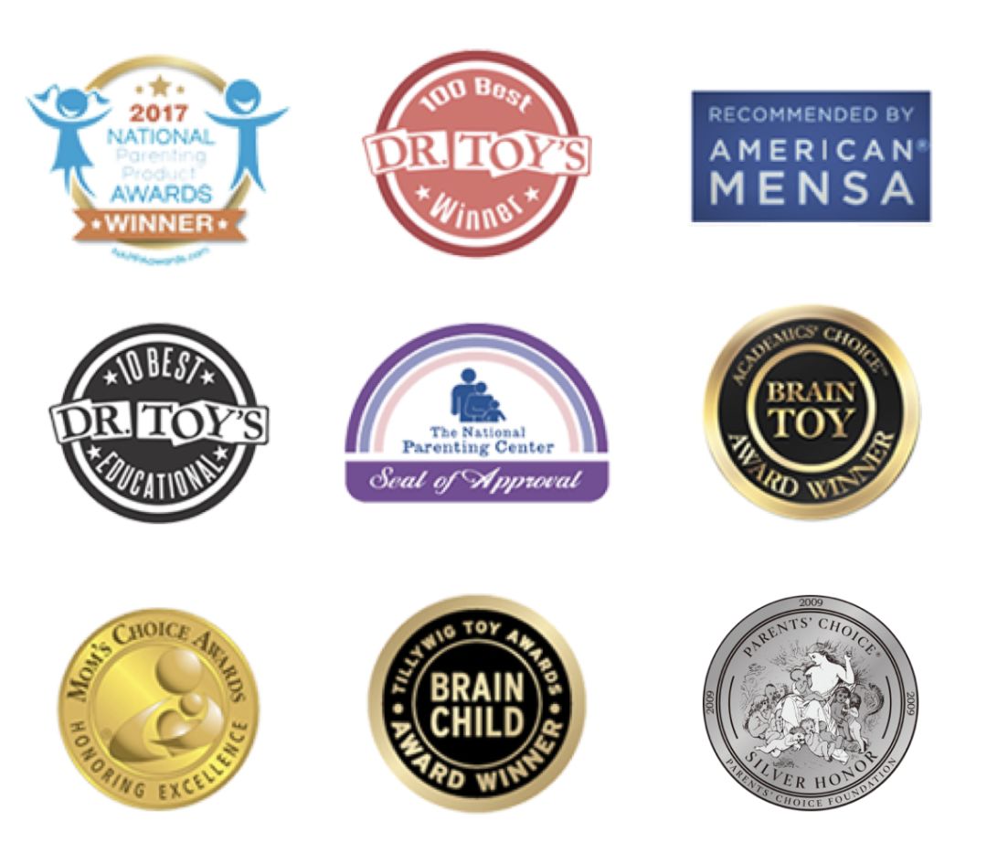 Prime Climb自2015年一推出,就受到众多数学老师的大力推崇,并获得9项含金量极高的美国玩具大奖,其中有“学术界脑力玩具金奖”,“Dr. Toy年度最佳奖”,还有门萨的推荐……