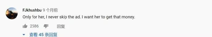 还有网友说:只有在看她的时候,我才绝对不会跳掉广告,因为我希望她能赚到那个钱。