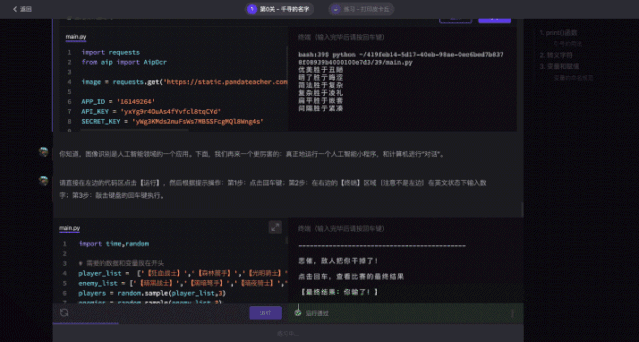 英语世界粉丝专享价 8.9 元 风变编程-python 小课 前4节课都是入门课程,也是Python编程里比较基础的代码语言和函数。第1天,你可以通过print()函数与变量,学会如何打印皮卡丘;第2天,你会在“非酋的吐槽”中学习到数据类型与转换的知识点;第3天,你会在灭霸、美国队长的故事中学习到条件判断与条件嵌套;第4天,哈利波特的宠物、罗恩的减肥计划带你学习input()函数的内容。每一次学习都像是一次通关,出bug会有明确提示,成功运行时满满的都是成就感!同时,我们还会有专属助教“酱酱”,为同学们提供学习指导、疑惑解答,陪伴你的Python之路~据了解,目前已经有100万+*小伙伴在学风变编程 | Python小课,原因很简单:课程中,边玩边学的闯关模式,能让你在游戏中就学会Python语法,轻轻松松解锁人工智能玩法。风变科技是一家专业做在线教育的公司,旗下有「熊猫书院」和「熊猫小课」这两款有超过百万用户的成熟产品。在风变编程的Python小课中,你可以通过电影、段子、Rap学到知识点,难懂的专业知识瞬间变得有趣易懂。平均每节课30分钟就能搞定,不需要担心没有时间学习。购买成功后,加助教微信、助教会拉你进百人学习群,就可以开始学习了。不需要下载软件,30秒就能进入界面学习。贴心的助教“酱酱”会每天监督你认真学习课程。如果哪里学不懂,也可以把疑问发给助教或者发到群里,都能获得解答。无论你是律师、法务、财务、HR、学生、金融从业人员、自由职业者、……在面对现在互联网上的海量资源和信息时,相比以前要耗费时间去找,现在更简单的操作方法已经摆在你的面前啦!