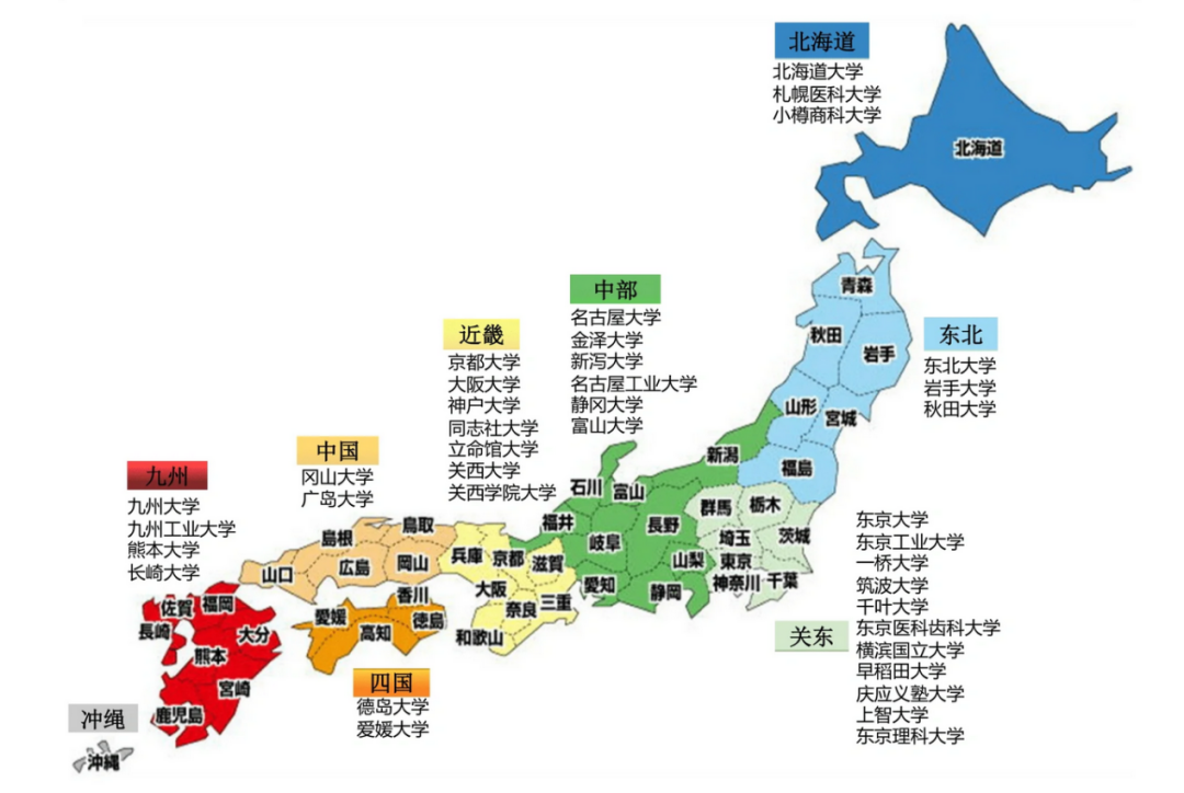 东京大学、京都大学、大阪大学、东北大学、名古屋大学、九州大学、北海道大学、一桥大学、东京工业大学、早稻田大学、庆应义塾大学、神户大学........