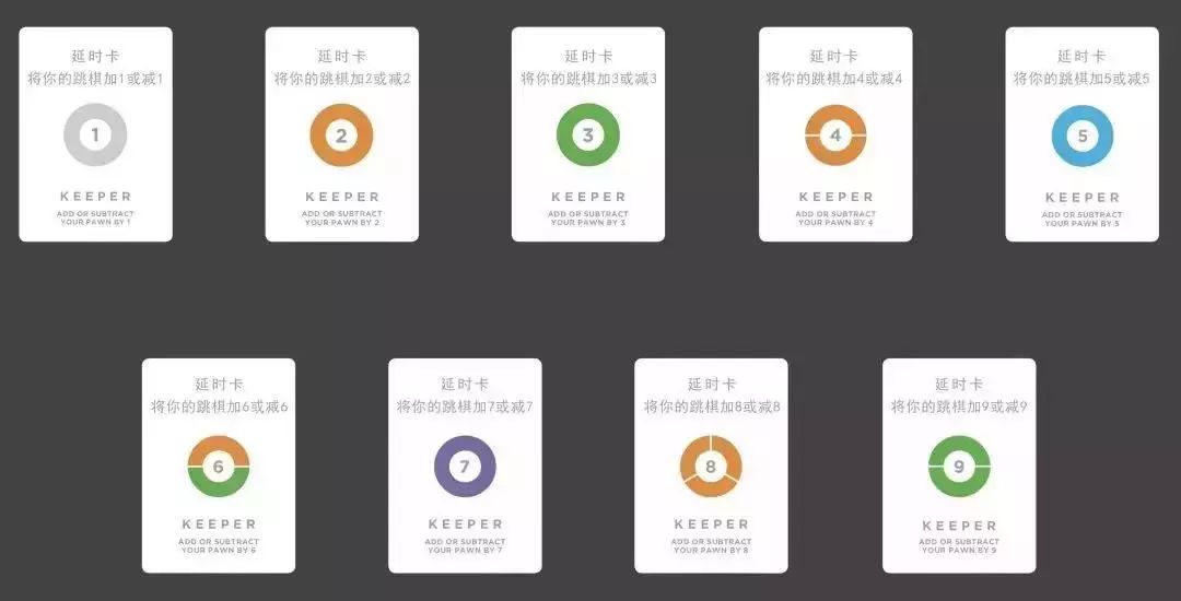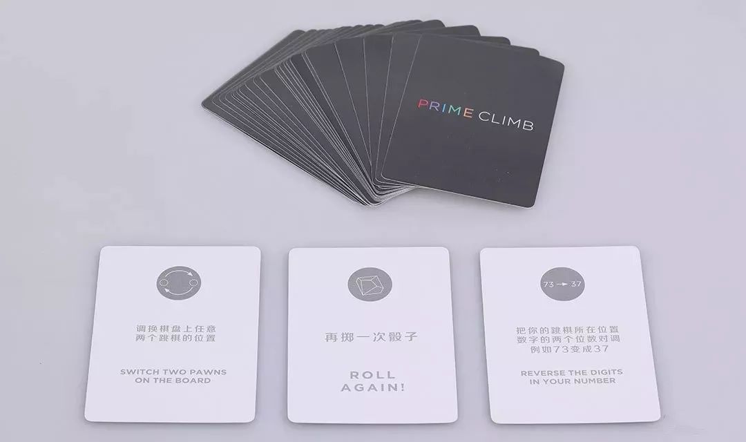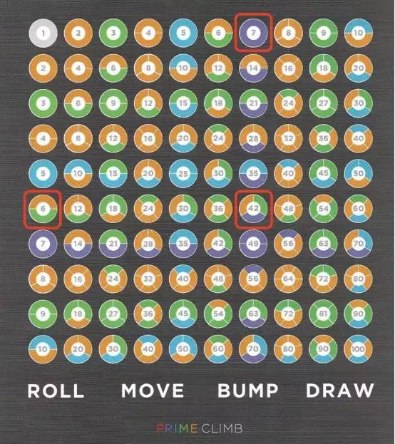当你结束了你的移动阶段之后,如果你的任一跳棋降落在完全红色(质数)的圆点,那么你可以抽一张技能卡。