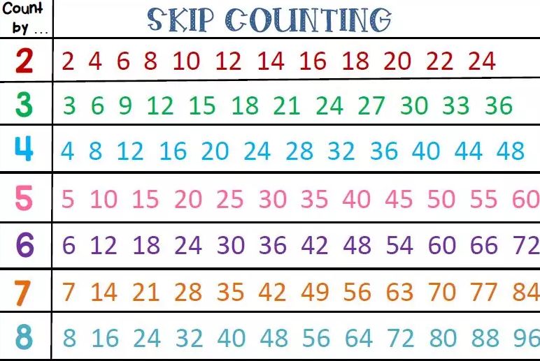 比起上来就开始背诵九九乘法表的学习方式,在国外的课堂里,经常会看到正式学习乘除法之前,老师都会先让孩子玩一段时间的Skip Counting(跳数),可以很好地培养数感。
