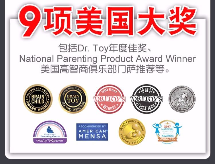 全球知名奖项自然也拿到手软,包括Dr. Toy年度最佳奖、National Parenting Product Award Winner等,还受到美国高智商俱乐部门萨的推荐。