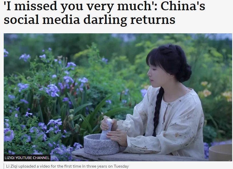 李子柒的视频多年来一直是我的慰藉。在无数个失眠的夜晚、在焦虑、恐慌和痛苦之时,我都会看她的视频。是她陪我度过了生命中一些最黑暗的时刻。她的恬淡宁静给了我对美好日子的希望,我永远无法真正表达出对她的感激之情。她触摸日出的那一刻,治愈了我未曾意识到的另一处心灵创伤。欢迎回来,李子柒。你从未离开过我们的心。