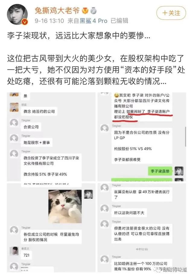 微念持股51%,李子柒持股49%。