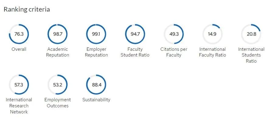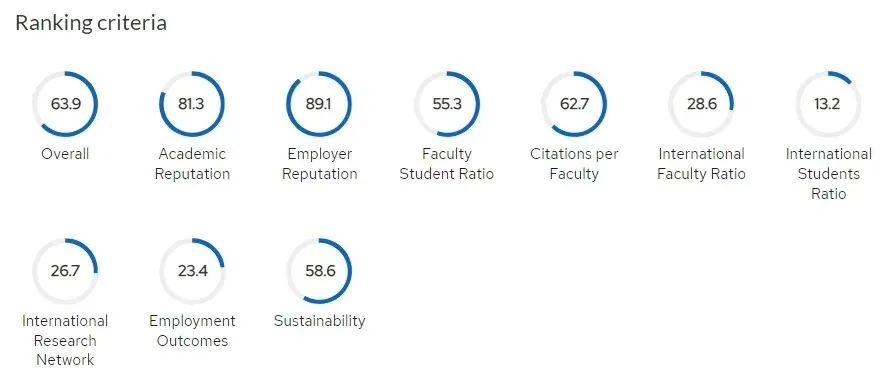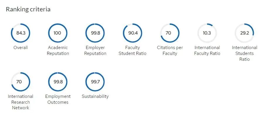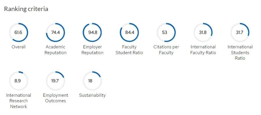 QS排名在学术之外,把“全球雇主评价”和教师学生比纳入指标体系(分别占10%和20%),可见这是一份注重学生就业的评价。
