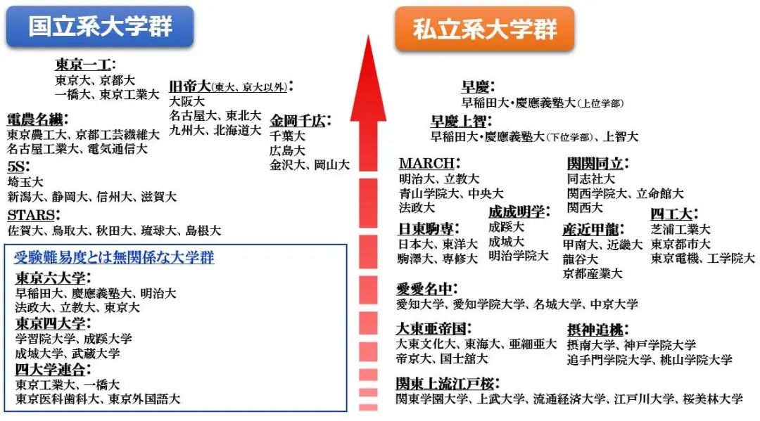 S级大学包括东京大学、京都大学、一桥大学、东京工业大学等国立大学,这几所大学不仅学术表现优异,地理位置也占优,这几年已成为日本大学入试中的最难关卡。