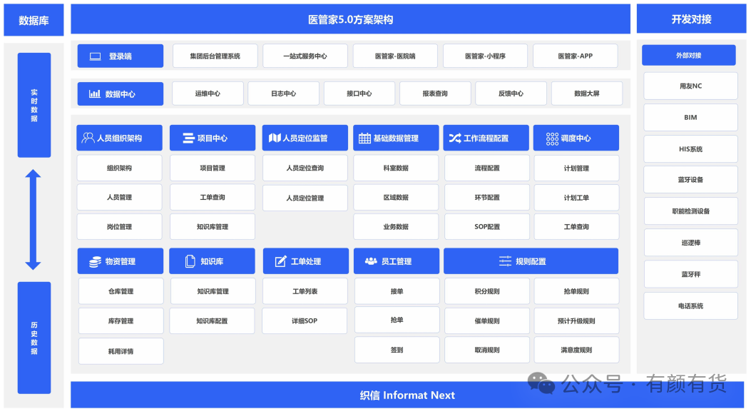 - 第三方对接:设计易用 API,与 HIS 系统、仓库系统等通信和交换数据。