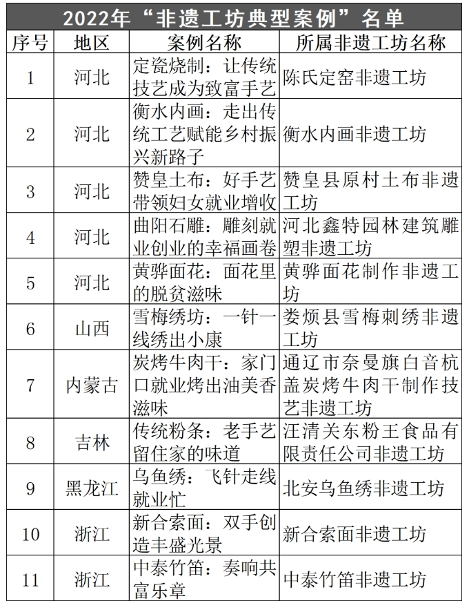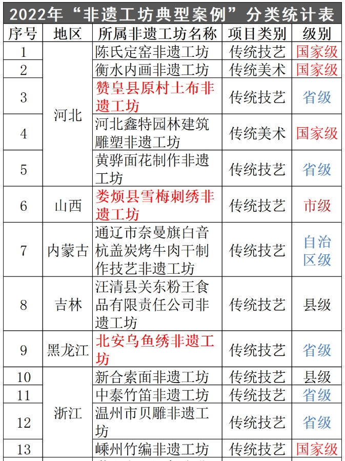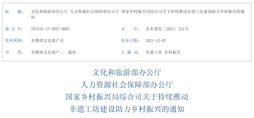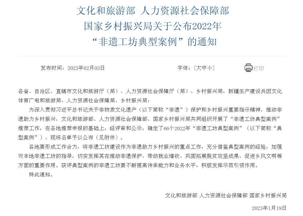 传承非遗文化是乡村振兴的新动能,为乡村全面振兴提供了文化哺育和支撑,也为乡村产业和人才振兴创造了新的发展机遇。文旅部等3部门公布了66个2022年“非遗工坊典型案例”。
