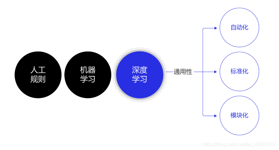 除了应用广泛的特点外,深度学习还推动人工智能进入工业大生产阶段,算法的通用性导致标准化、自动化和模块化的框架产生,如 图12 所示。